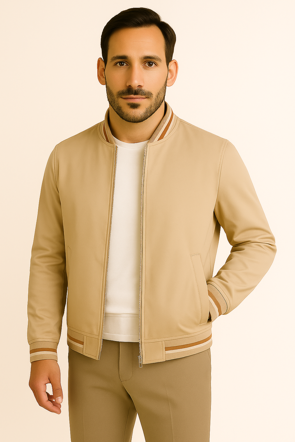 Ivar bomberjakken kombinerer den klassiske amerikanske campusstilen med en moderne og strukturert passform. Den stripete ribbede kragen, mansjettene og kanten gir jakken et sporty preg som gjør den unik. Bruk den med jeans eller joggebukse for en stilig og selvsikker look uten anstrengelse.